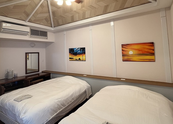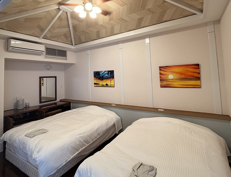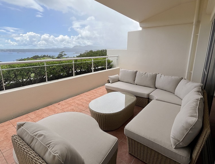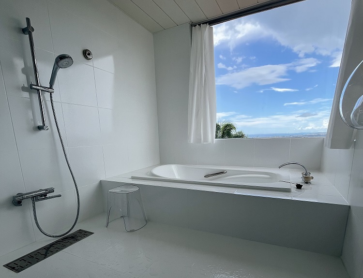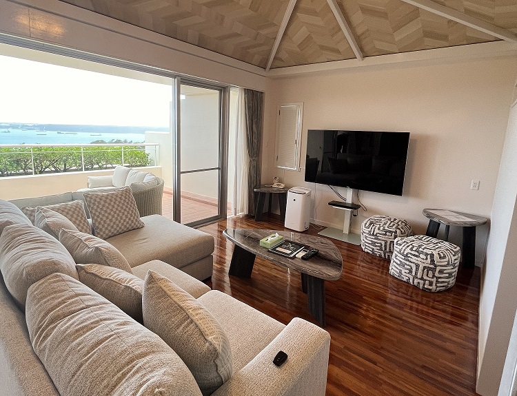 ヴィラ(コンドミニアムタイプ)バス・リビングから海が一望できる2LDK(ベッド4台・セミダブルサイズ)のお部屋です。